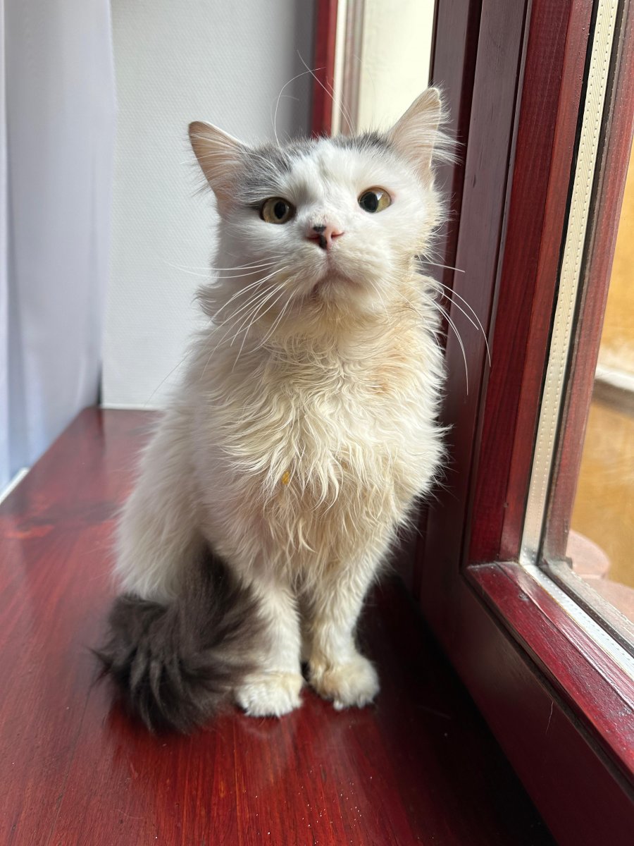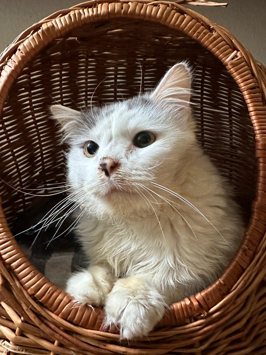 Kherson wurde letztes Jahr von uns stark verwundet aufgefunden, sein Kiefer war durch Schüsse komplett zertrümmert. Zunächst mit wenig Hoffnung evakuiert, konnte nach einem mehrwöchigen Klinikaufenthalt sein Kiefer in einer OP wiederhergestellt werden. Bei Daria im Katzen-Shelter wurde er anschließend bis heute liebevoll betreut und aufgepäppelt. Von Tag zu Tag geht es ihm dort besser. Mittlerweile kann Kherson wieder selbstständig und ohne Sonde Nahrung aufnehmen, für uns nach all den Erlebnissen ein kleines Wunder. Zu seinem vollständigen Glück fehlt nun nur noch das passende Zuhause.