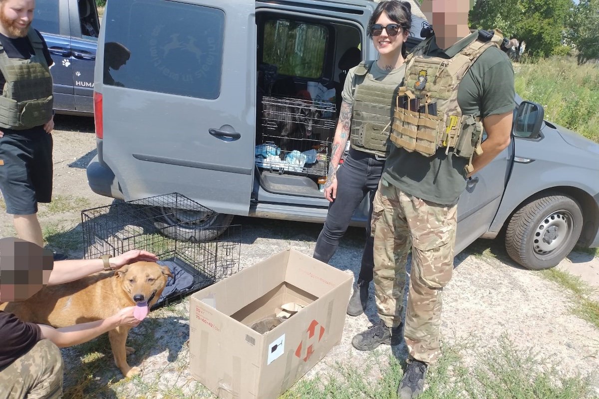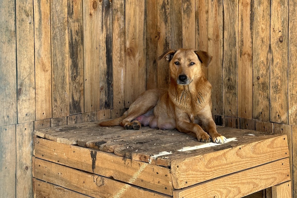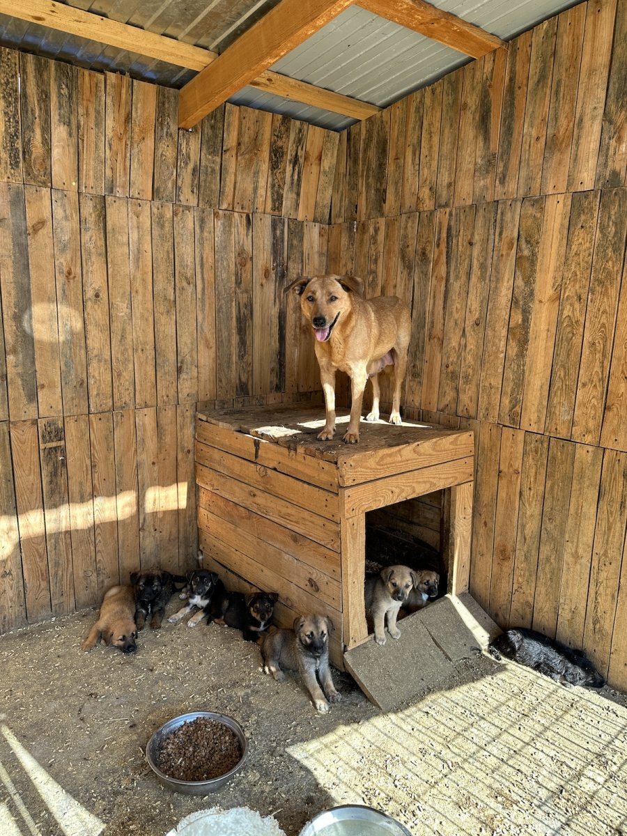 Minka haben wir aus Huliaipole mit ihren 8 Welpen evakuiert. Sie lag direkt an der menschenverlassenen Grenzzone, die von zwei Kilometer entfernten russischen Soldaten unter ständigem Beschuss stand. Dort gab es kein Wasser, keinen Strom, nichts - nur Trümmer. Sie hat in einem Militärunterschlupf ihre Welpen zur Welt gebracht und wurde vom Militär dort versteckt gehalten, damit ihr und den Welpen nichts passiert. Sie ist nun sicher in unserem Partnertierheim in Kyjiw untergebracht, vier ihrer acht Welpen hatten bereits Glück und wurden schon adoptiert. Nun wollen wir Minka ein Ausreiseticket ermöglichen und sie bei unserer nächsten Evakuierungsreise mitbringen.